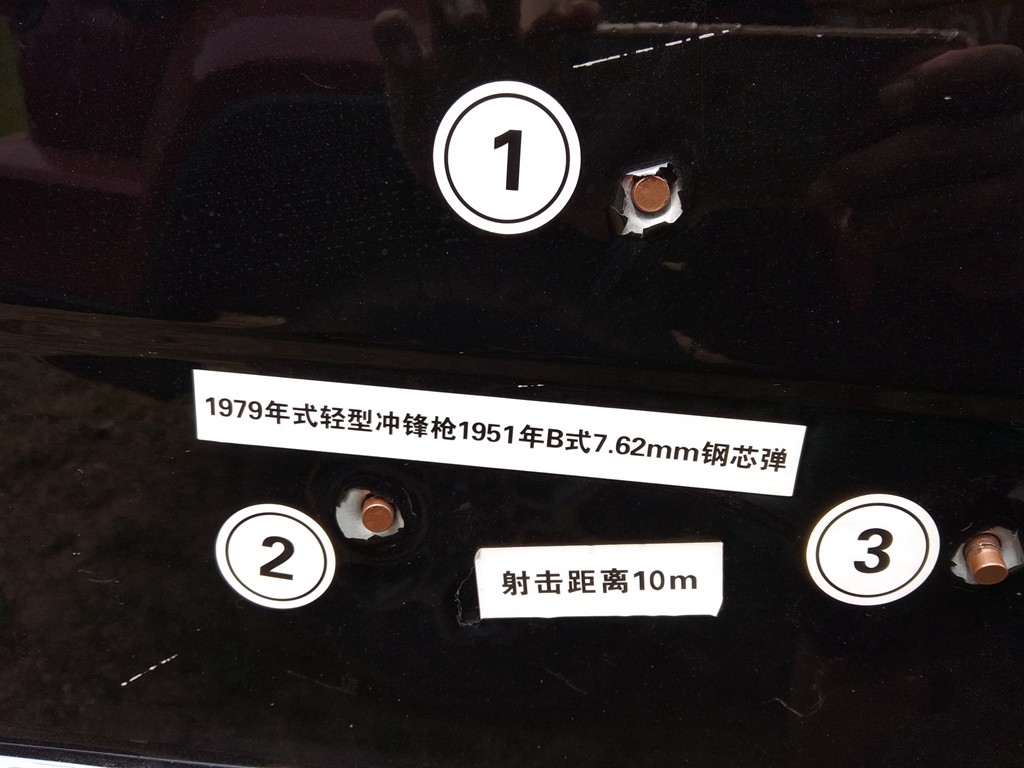 实验测试,射击枪械为1979年式轻型冲锋枪配1951年B式7.62mm钢芯弹,射击距离为10m。