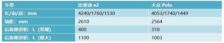 虽然摆在你面前,比亚迪e2和大众Polo都很小巧,但数据显示两者确实还是有些差距,比亚迪e2在车身及轴距方面全面超越Polo,而且纯电动车因为没有发动机和变速器的布局干扰,车内的空间利用率更好。比如比亚迪e2的后排地板实现了全平,可以舒适的乘坐三人,而Polo因为底盘布局了排气管,导致后排中间位置有较高的突起,使得原本就局促的后排,在需要乘坐三人时中间乘客会更加难受。与此同时在日常出行非常关键的后备箱装载能力方面,比亚迪e2得益于纯电平台的优势,后备箱常规容积可达400L,最大可扩充至1100L,而Polo的后备箱常规容积则只有310L,扩充后最大容积为1003L。