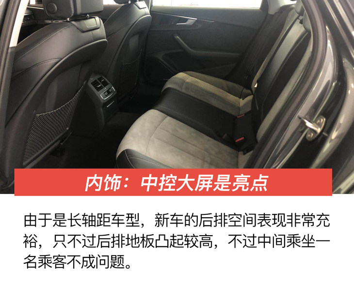 做一部分,新车配备了真皮+翻毛皮座椅,并且前排座椅采用了8向电动调节+四向腰部支撑调节,和现款车型保持一致。后排部分,由于是长轴距车型,新款A4L的后排空间非常充裕,即便是乘坐三名乘客,也不会感到拥挤。