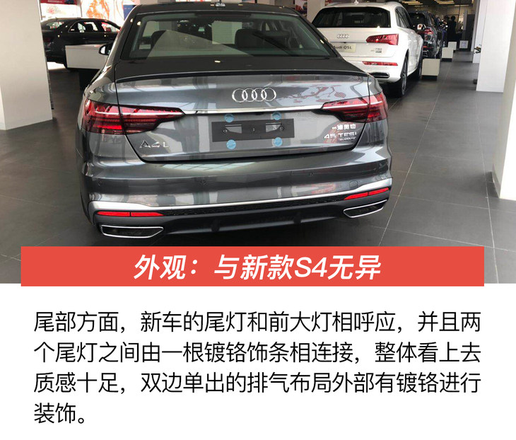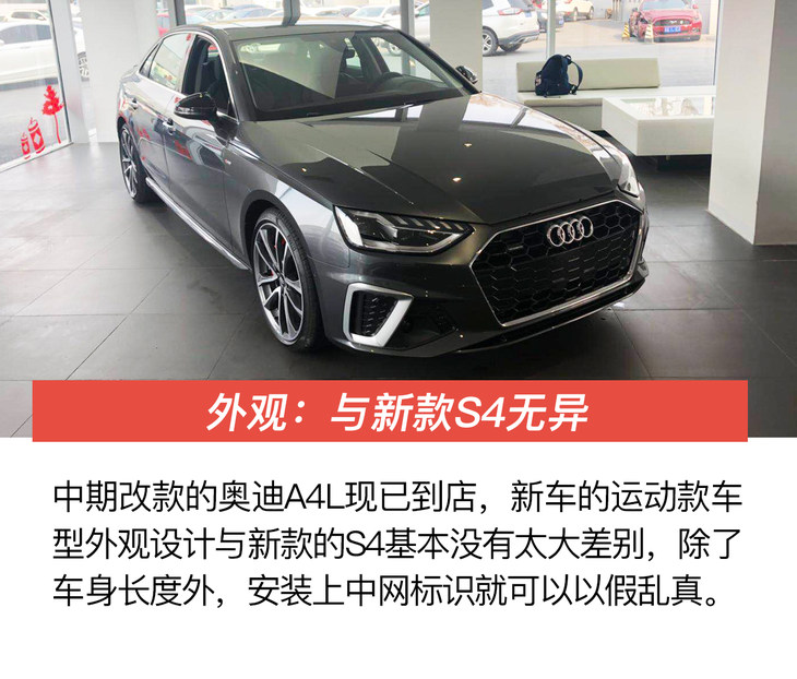 在奔驰宝马都更新了旗下C级和3系后,奥迪也即将推出中期改款的A4L来提升竞争力,毕竟豪华品牌这一级别的车型是非常受到消费者的喜爱。日前,行车视线从奥迪经销商处获悉,新款A4L已经到店,并且即将在4月正式上市,我们也率先针对该车进行了实拍解析,看看这款外观酷似S4的新车,究竟有什么地方吸引消费者。