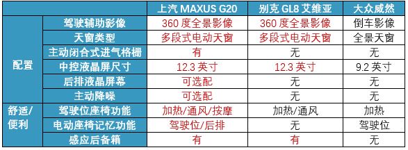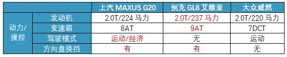 总结来看,别克艾维亚动力最突出,上汽MAXUS G20和大众威然都使用2.0T发动机,但前者马力有小优势;支持多种驾驶模式,在不同驾控场景都能随意操控。