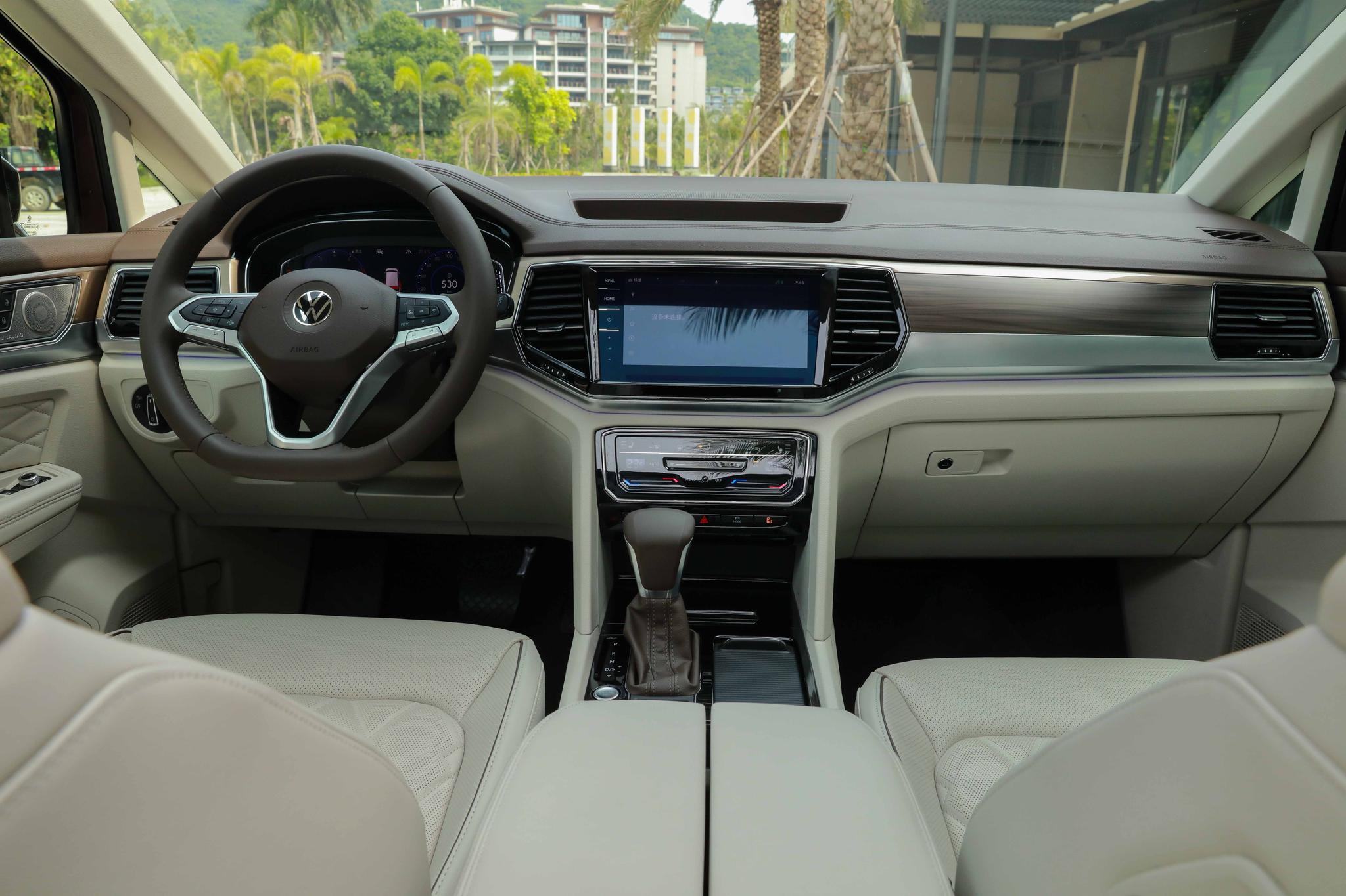 大众威然车长达5346mm,轴距为3180mm、宽为1976mm、高为1781mm,第三排座椅放倒后,后备箱纵深可达1500mm,车内储物格丰富且大而实用。